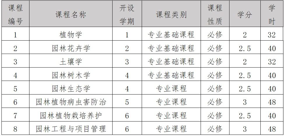 (二)园林专业荣誉课程共计8门课程(见表3);