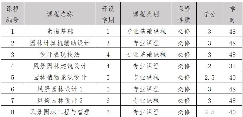 (一)风景园林专业荣誉课程共计8门课程(见表2);
