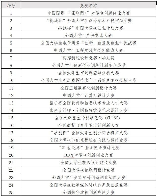 (2)学科竞赛获奖等级与《欧冠中文官网大学生学科竞赛管理办法》文件一致,竞赛目录见表1。