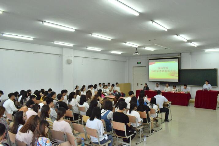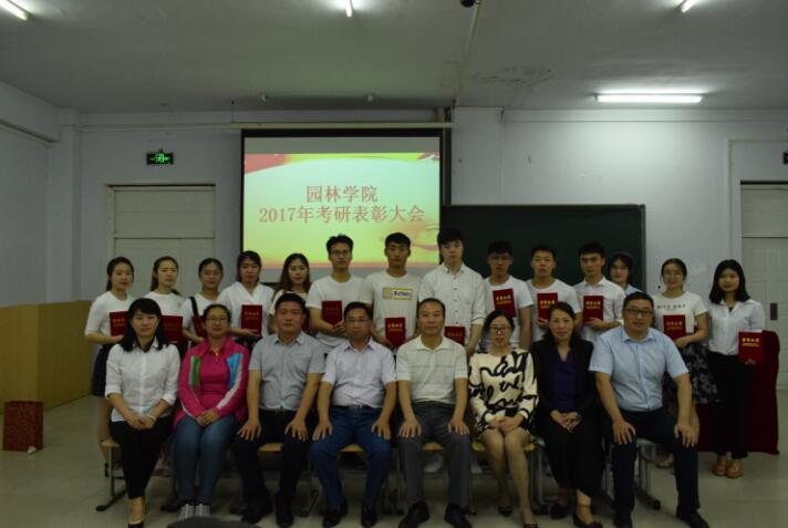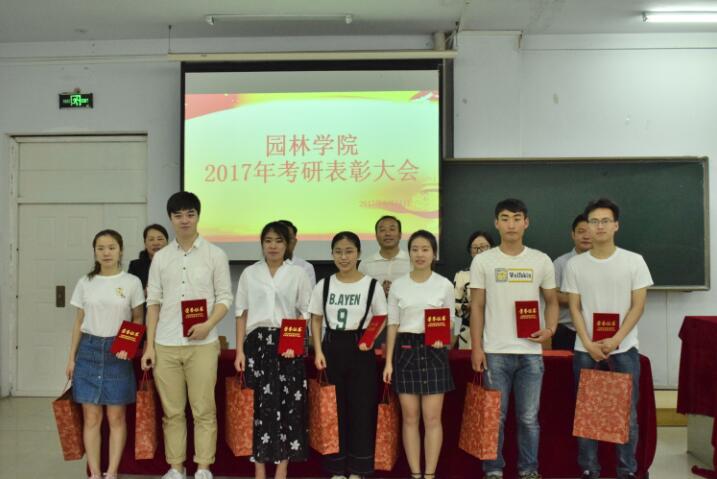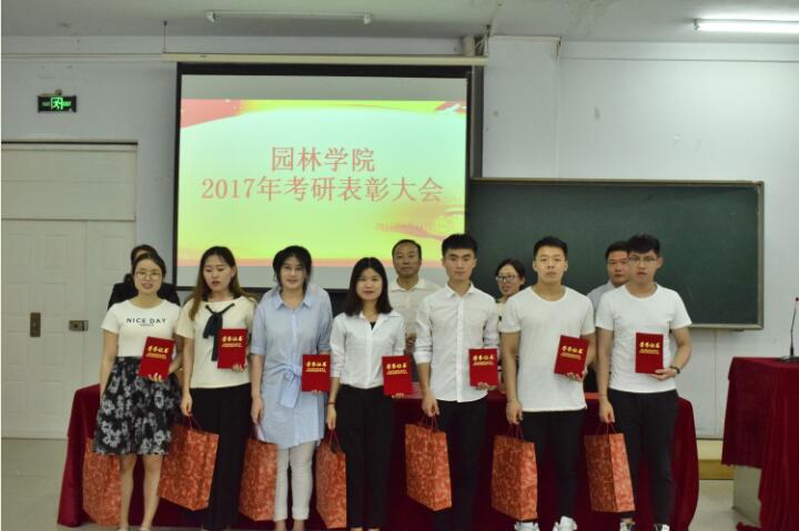 会议首先由学院党总支书记孟祥志宣读对学院2017年考取硕士研究生同学的表彰决定。随后对园林系任家兴、风景园林系赵凌霄等15名考取硕士研究生的同学颁发“考研先进个人”的证书。考研学生代表刘芯妤、陈凌子两名同学分别结合自身情况分享她们考研的经历以及对学校学院的美好祝愿。最后,学院院长杨义波代表学院讲话,他首先对15名考研的同学表示了祝贺,并希望他们不忘初心,继续努力,在新的学习环境中取得更优异的成绩为校争光。