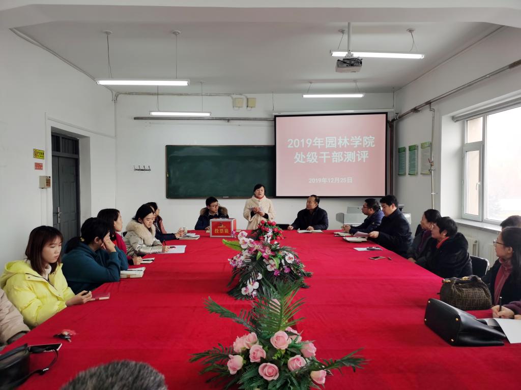 12月25日中午,学院召开2019年处级干部测评会议,学院全体教职员工参加会议。学校党委组织部杨光同志、李长硕同志到会组织开展测评工作。