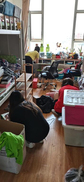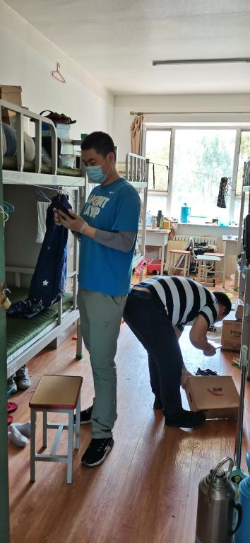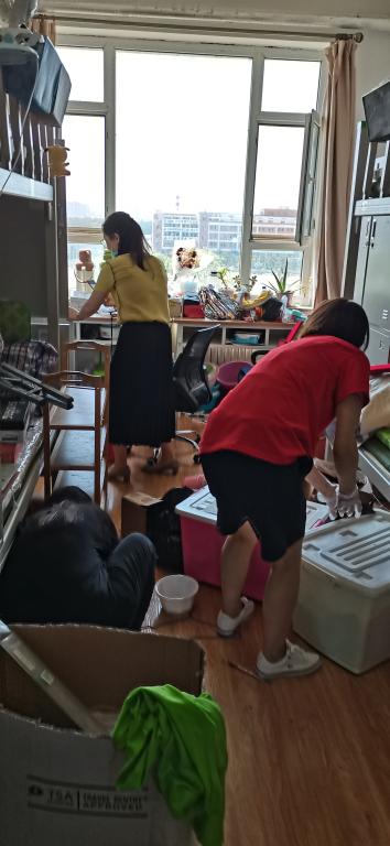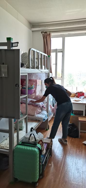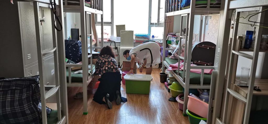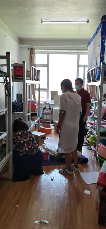 上午10:00,直播活动结束,学院全体教师进入学生公寓,开始为毕业生整理行装。
