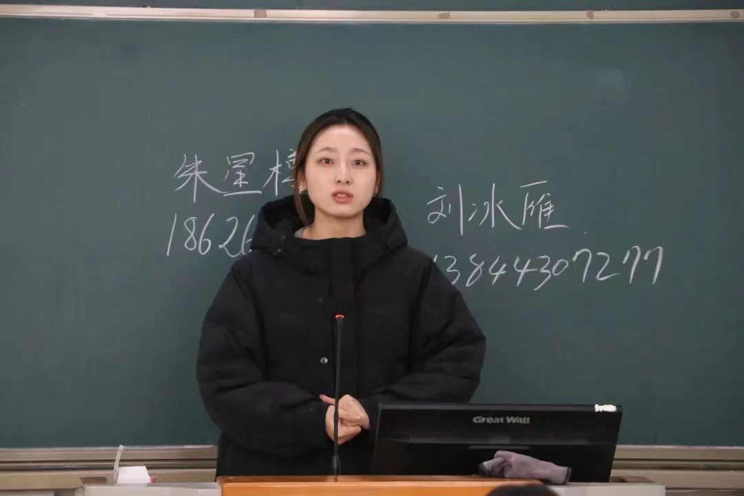 刘冰雁老师表示:同学们要珍惜学校提供的学习平台,发掘兴趣点,把握自我提升机遇。会上还邀请了党员研究生姜珊,姜珊学姐寄语学弟学妹们,要学会劳逸结合合理安排学习时间,勇于突破困难挑战,不断充实自己的大学生活。