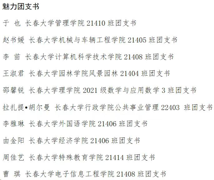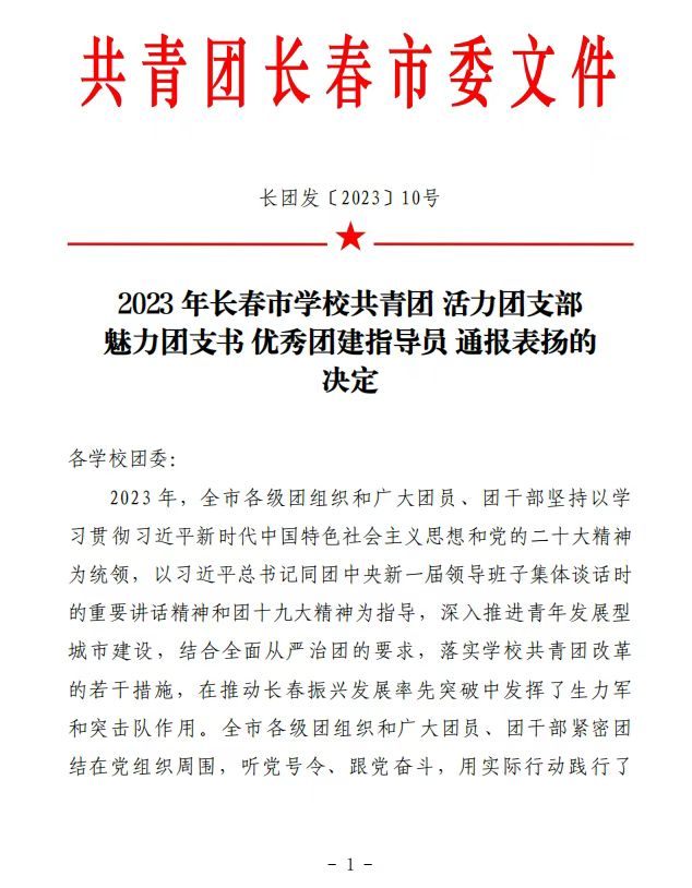 我院在2023年长春市学校共青团 “活力团支部”“魅力团支书”“优秀团建指导员”评选中获得佳绩!