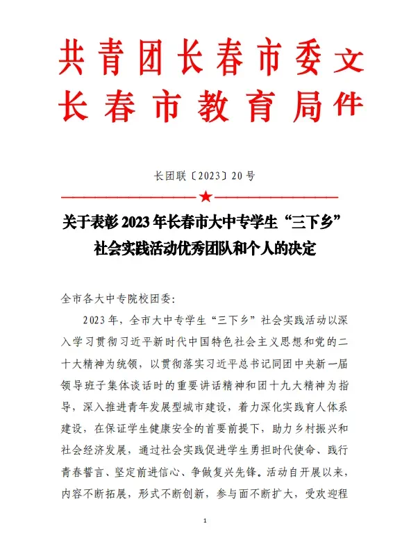 我院在2023年长春市大中专学生“三下乡”社会实践活动评选中获多项表彰