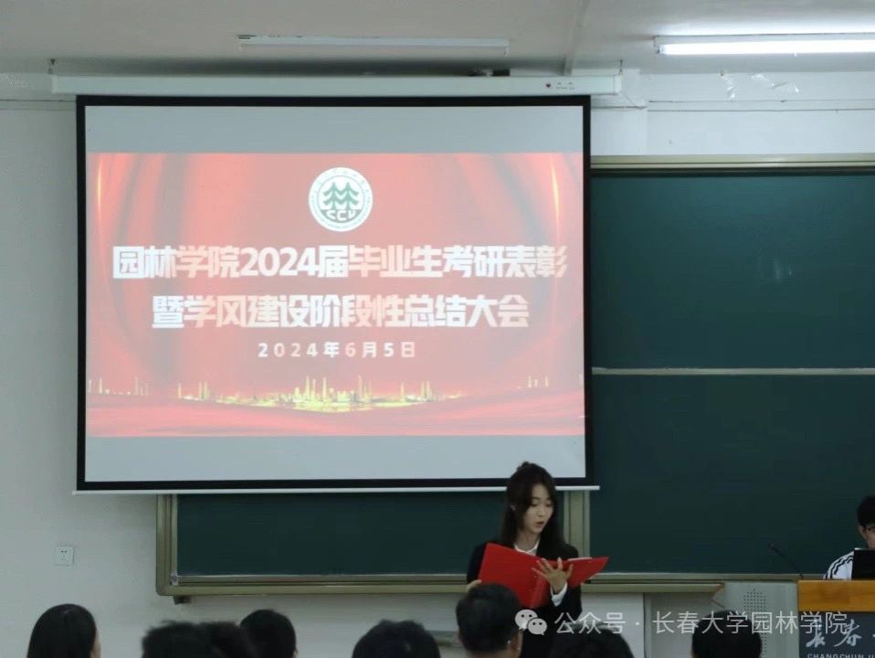 为表彰激励考研优秀学子,发挥考研成功学子的榜样示范作用,全面激发广大学子的考研热情,进一步推进“学在园林,学在课堂”学风建设工作发展,6月5日下午13时,我院于西二教多媒体一隆重举办了2024届毕业生考研表彰暨学风建设阶段性总结大会。