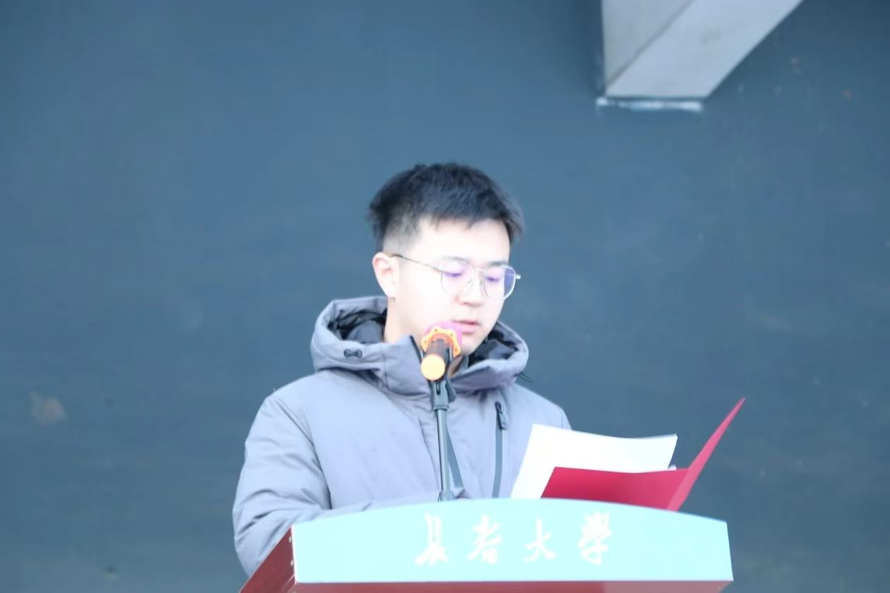 升国旗仪式礼毕,研究生中共党员刘桉男同学作“坚持与奋斗”主题演讲。他结合自己的经历,讲述了从本科到研究生的种种经历和对目标的执着,并在大学期间学会了坚持与自律,让我们明白青年的人生之路很长,前进途中,有平川也有高山,有缓流也有险滩,有丽日也有风雨,有喜悦也有哀伤。心中有阳光,脚下有力量,并鼓励大家去坚持梦想、不懈怠,创造无愧于时代的人生。