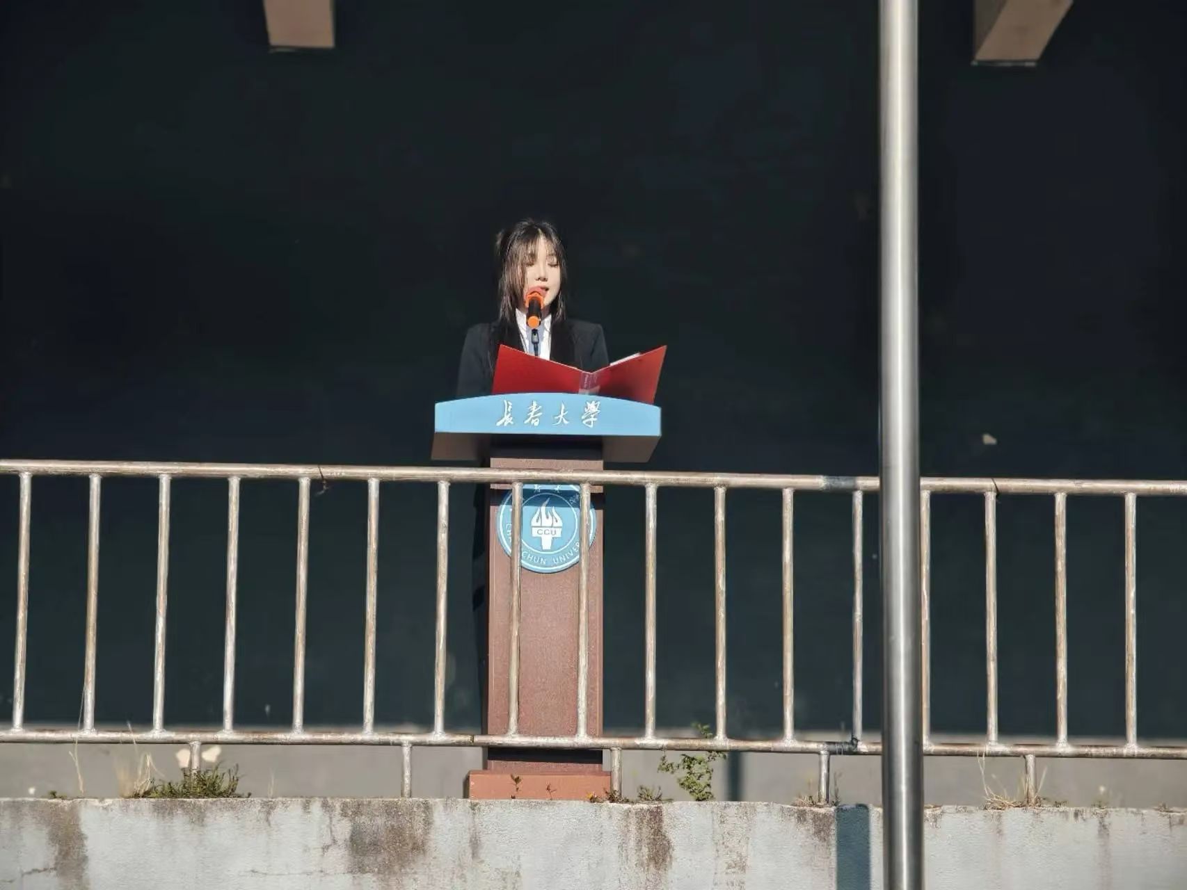 升国旗仪式礼毕,风景园林 22404班卢琳琳作“笃行致远绽芳华,青春逐梦正当时”的主题演讲。她分享了初入大学时的体验,积极参加各种实践活动。在学习上,她认真对待每一堂课,做好每一学科的笔记。她鼓励同学们承担起青年人的责任与使命,为全面建设社会主义现代化国家贡献青春力量,做肩负使命的奋斗者和追梦人。