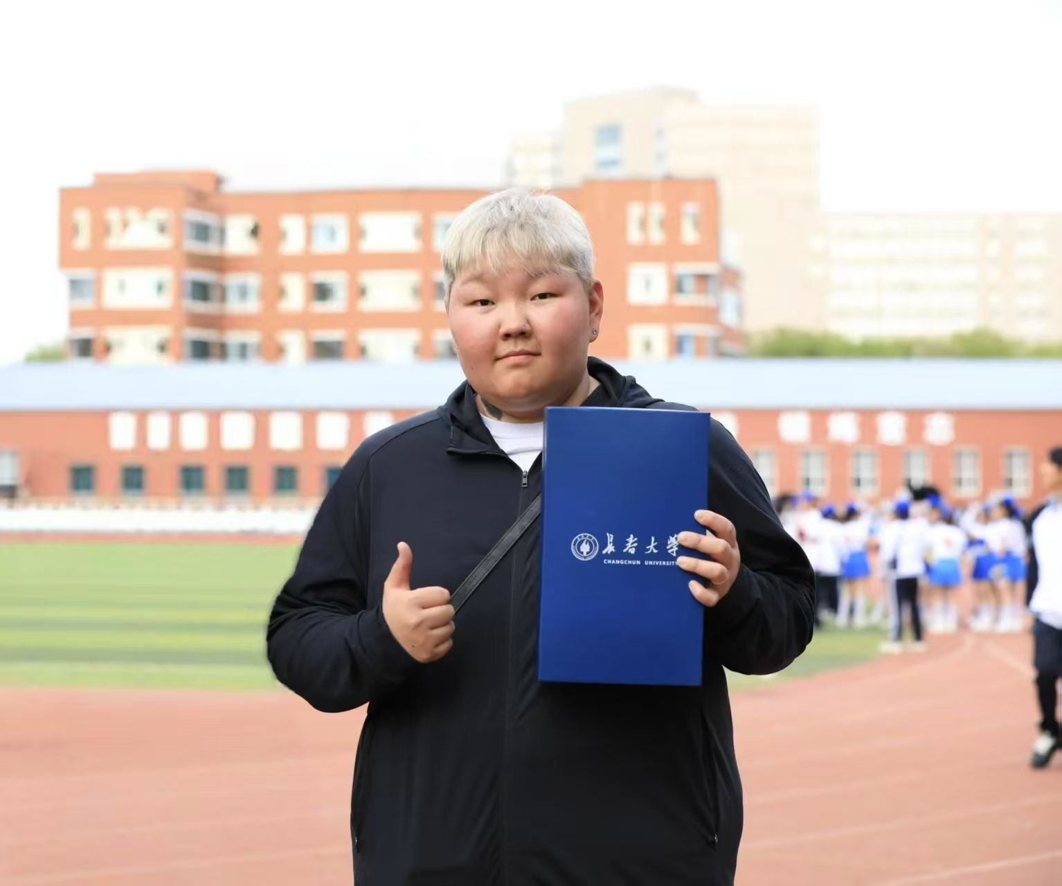 铅球比赛现场气氛紧张,斯乐木恒走上投掷区。她身形沉稳,目光专注,将铅球稳稳抵在肩头。短暂蓄力后,只见她身体如弹簧般猛然扭转,下肢发力蹬地,带动全身力量瞬间爆发,手臂顺势推出铅球。铅球离手后在空中划出一道弧线,向着远方飞去片刻后,裁判宣布成绩——斯乐木恒打破校纪录!观众席瞬间沸腾,欢呼声此起彼伏。斯乐木恒握紧拳头振臂庆祝,汗水与笑容交织,用精彩的发挥,为自己赢得了这份荣耀 。