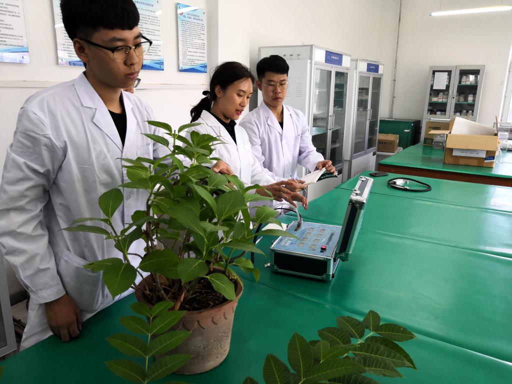 学院教师带领学生在实验室进行专业实训