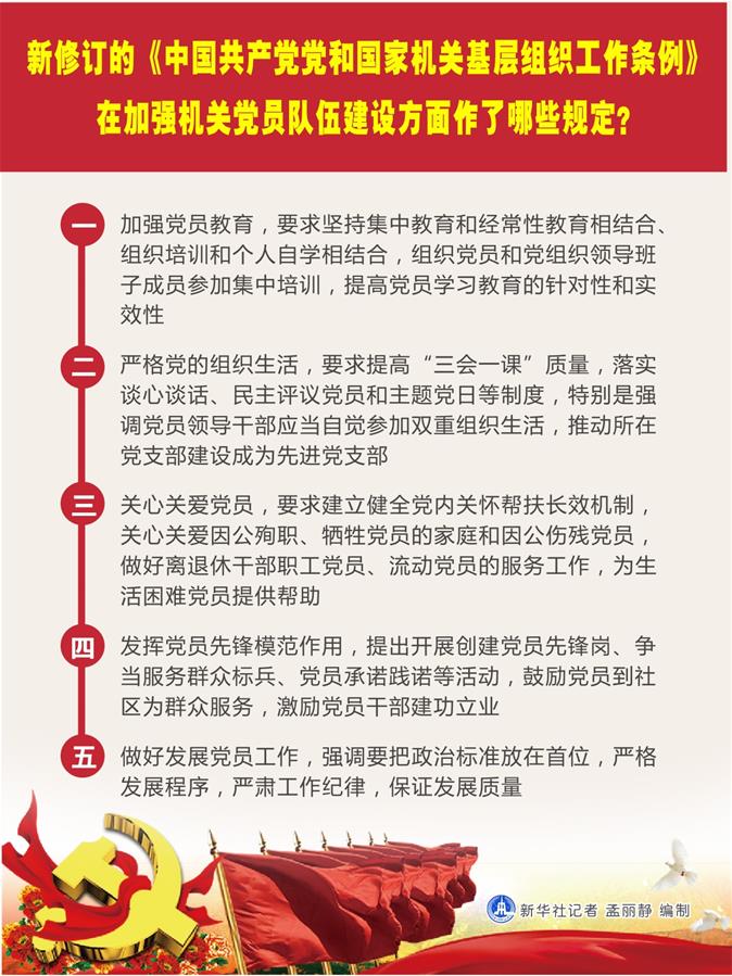 新修订的《中国共产党党和国家机关基层组织工作条例》在加强机关党员队伍建设方面作了哪些规定?
