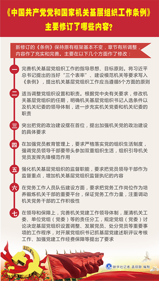 《中国共产党党和国家机关基层组织工作条例》主要修订了哪些内容?