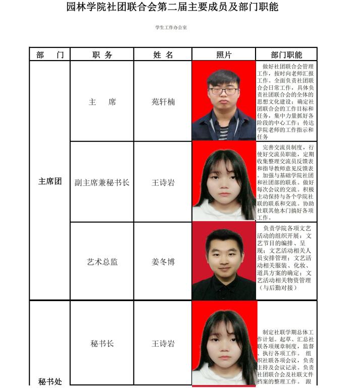 欧冠官网社团联合会第二届主要成员及部门职能