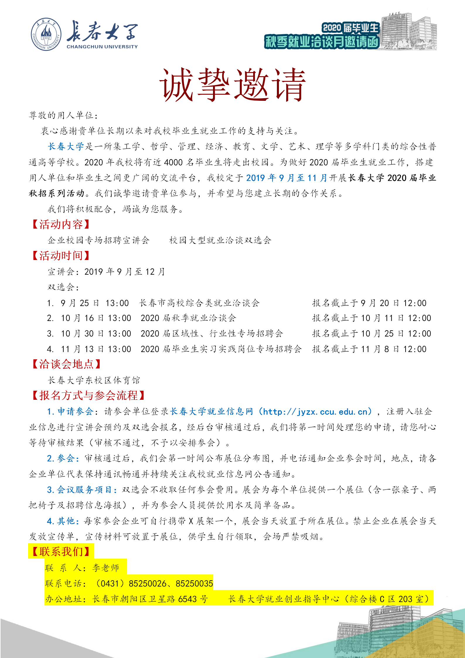 欧冠中文官网2020届毕业生秋季就业洽谈月邀请函