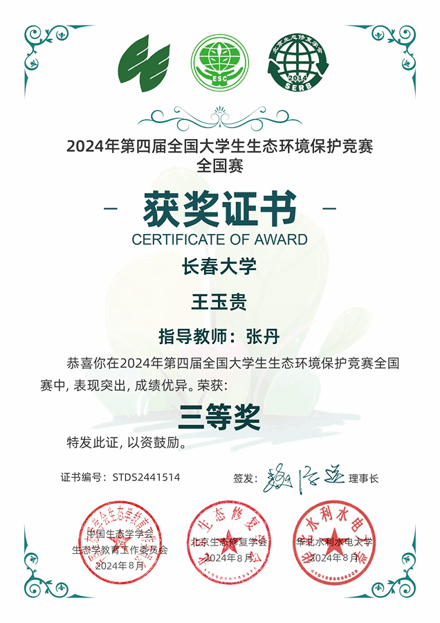 学院师生团队在2024年第四届全国大学生生态环境保护竞赛全国赛获奖
