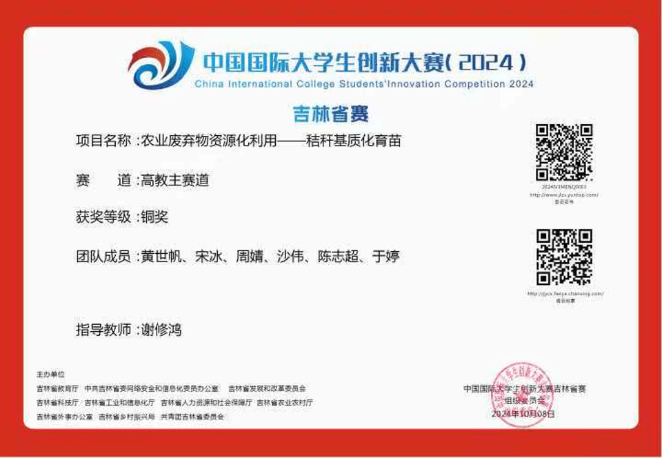 学院师生团队在2024年中国国际大学生创新大赛吉林省赛中获得铜奖