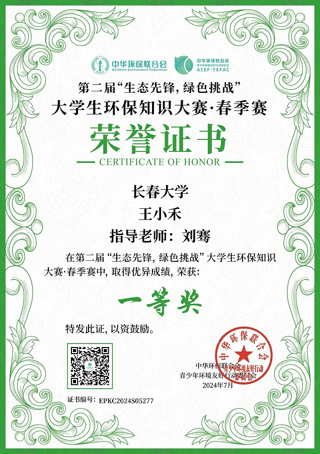 学院师生团队在第二届“生态先锋,绿色挑战”大学生环保知识大赛·春季赛中取得优异成绩荣获一等奖