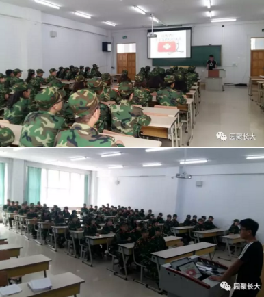 烈日高照,艳阳当头。欧冠官网16级的同学们身着军装,开始军训生活。看!同学们整齐的坐在教室里在做什么呢?