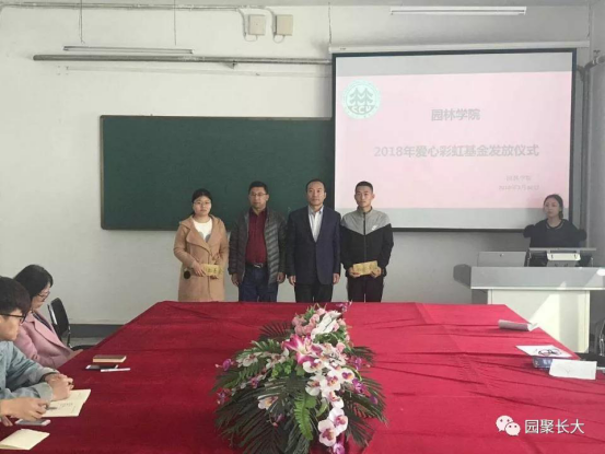 会议首先由主持人公布了受资助学生名单,由孟书记和杨院长为两位同学发放彩虹基金,把全院师生的温暖送给两位同学。然后由获奖学生代表16403邓文斌发表讲话,他首先向各位领导老师的关心爱护表达了真诚的谢意,并表示今后一定要努力学习,全方面锻炼自己,以优异的成绩回报学院领导、老师及同学们的期待。