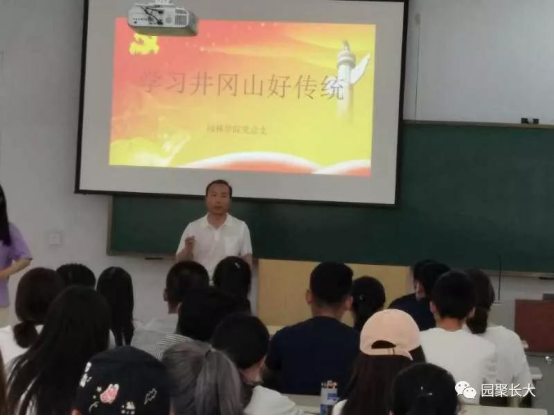 孟书记从坚定不移的革命信念、坚持党的绝对领导、密切联系群众、一切从实际出发、艰苦奋斗五个方面为大家诠释了井冈山精神的重要意义及其内涵,用切身体会向大家讲述了在井冈山学习的真情实感,使全体师生感受到永不褪色的井冈山精神和老一辈革命家崇高的爱国主义情怀。