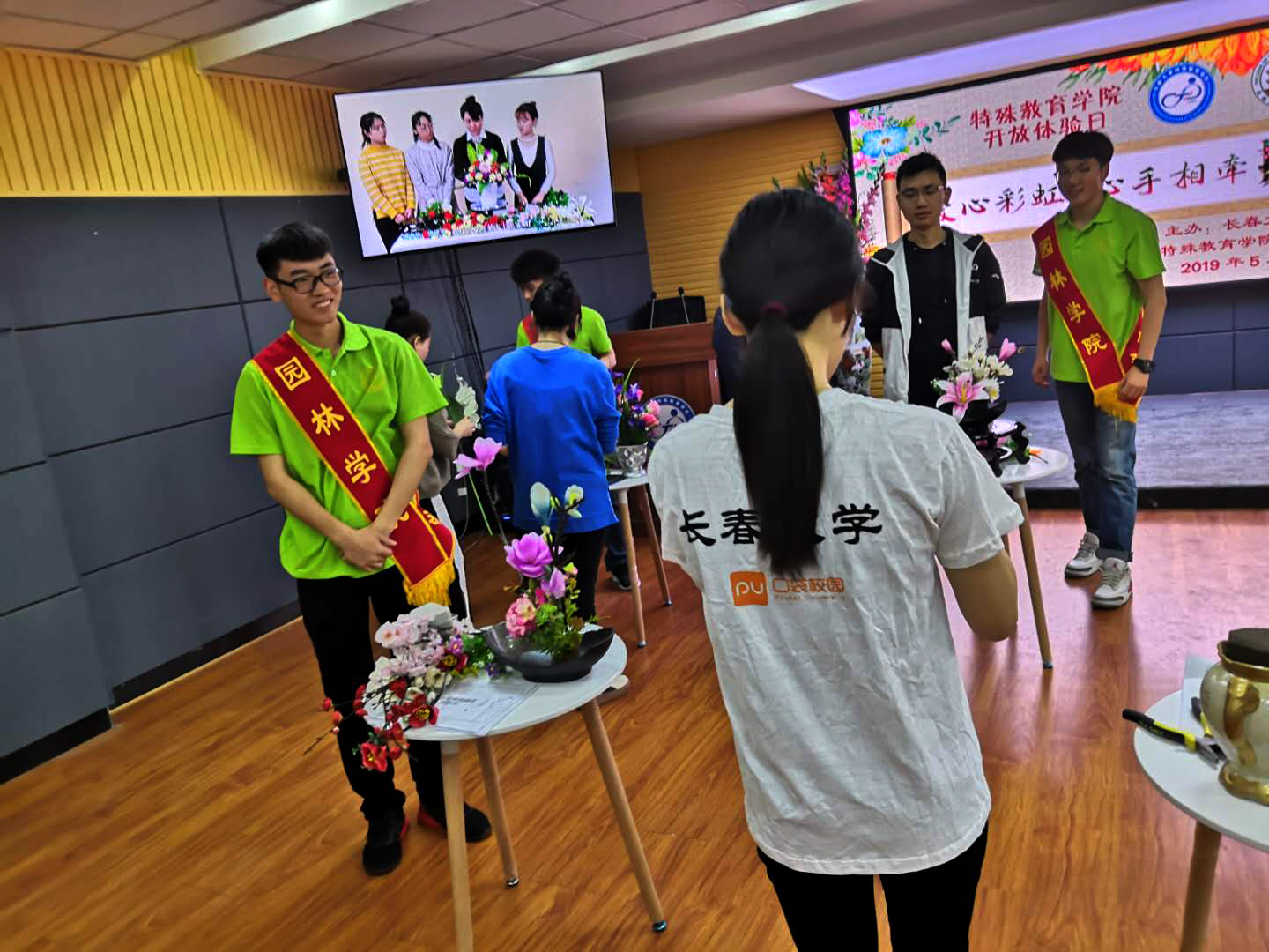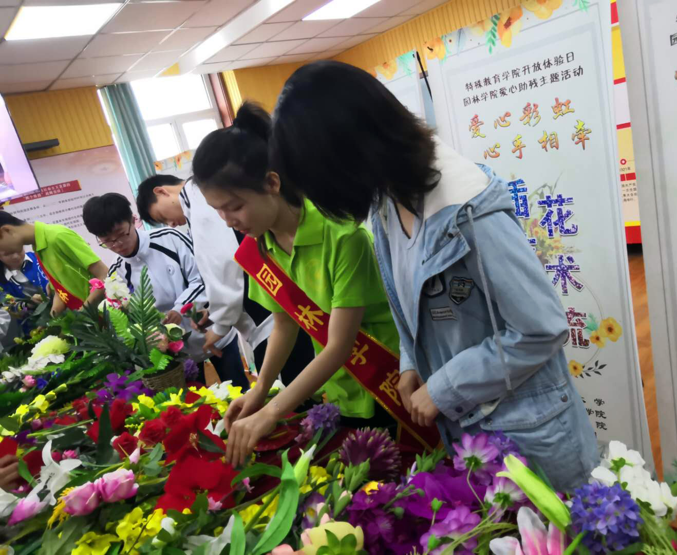 5月19日是全国第二十九个助残日,学校举办了特殊教育学院开放体验日活动。期间,欧冠官网与特殊教育学院共同组织承办了“爱心彩虹·心手相牵”插花艺术交流活动,学校有关领导、各院部师生代表、校外共建单位代表、相关媒体记者和部分市民共同参与了活动。