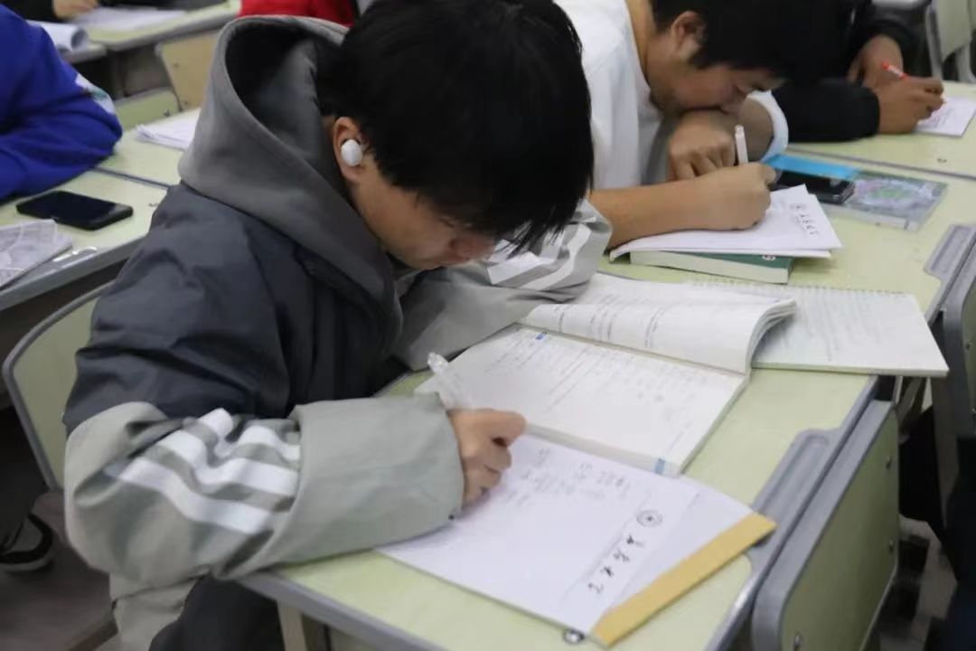 笔与纸的摩擦,书与手的碰撞,写下的是对理想的渴望,同学们奋笔疾书,把握晚自习的每分每秒,写字声,翻书声,在这安静的教室时不时响起,好似小小的水滴落入大海,无声无息却激起一圈圈波纹。