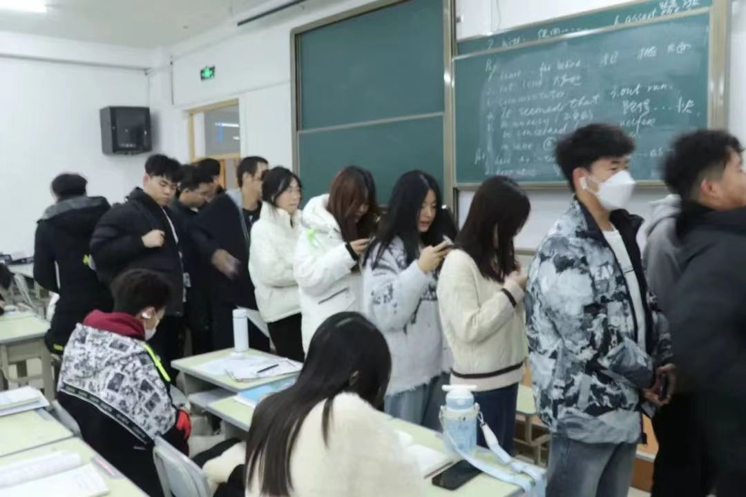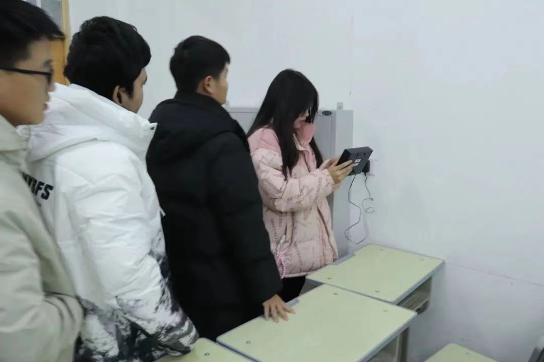 晚自习结束后,忙碌了一晚的同学们有序签到离开。