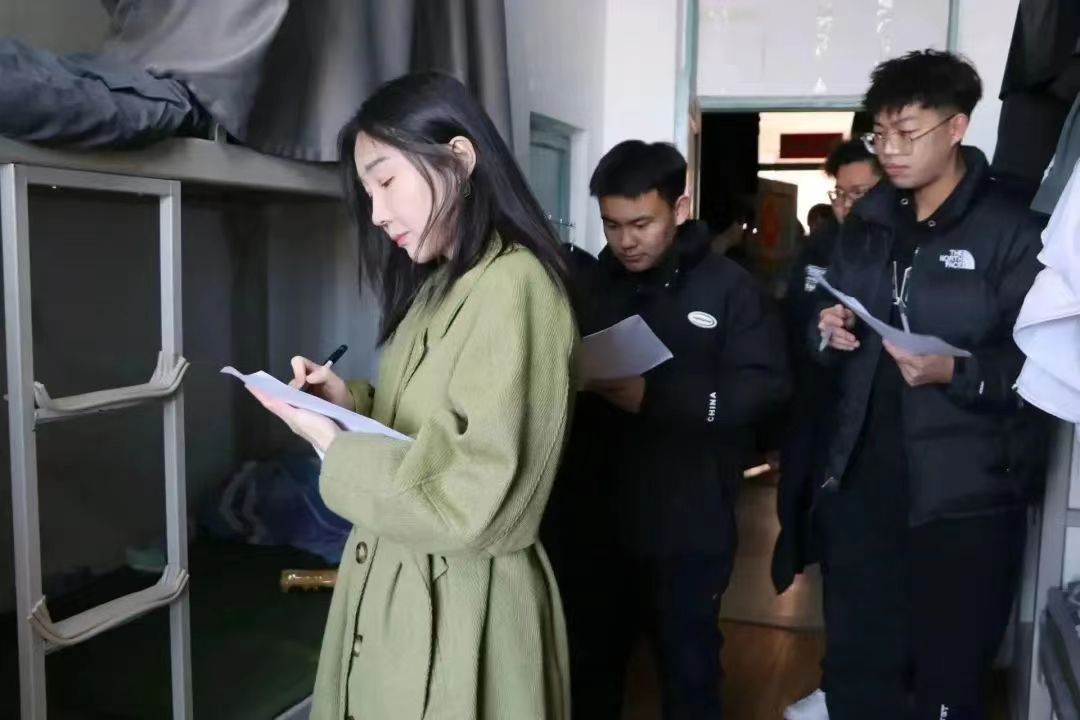 学生工作处公寓管理科科长汪春泉、公寓管理科郭荣亮老师、学院党委副书记韩强、学办主任刘鑫鑫、副科级组织员李晨溪老师深入学生宿舍检查卫生大扫除情况,并为获奖寝室颁奖。