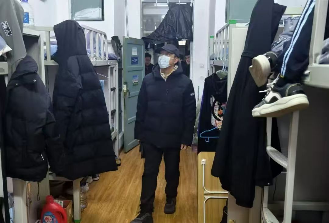 为扎实推进“欧冠中文官网2024年‘一站式’学生社区安全防火100天专项活动”,加强我院宿舍管理,推进文明宿含建设,鼓励学院学子形成良好的劳动习惯,营造和谐温暖的寝室氛围以及舒适整洁的学习生活环境,2024年12月25日下午14时,学院党委副书记韩强、团委书记兼学办主任刘鑫鑫、党委副科级组织员李晨溪,学院办公室权晓林老师以及公寓服务部全体成员深入学生寝室,对寝室卫生状况及安全建设进行彻查。