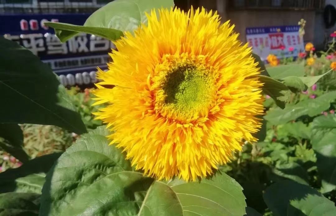 重瓣向日葵金黄色,花大,花瓣较多,花型丰满,株型挺拔直立,花朵明亮艳丽,我国很多地方有大面积的向日葵花海。