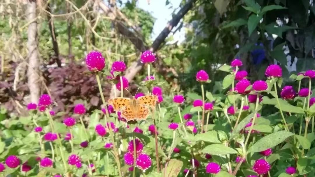 千日红顶生许多圆球形的头状花序,苞片紫红色,从6月到9月开花不断,大片的栽植有较好的效果,花坛中经常使用。