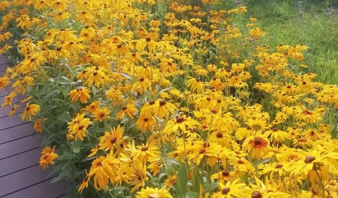 黑心金光菊花量大,花期6~10月上旬,舌状花的金黄与管状花的紫黑对比让花丛更加明艳与惹人注目。